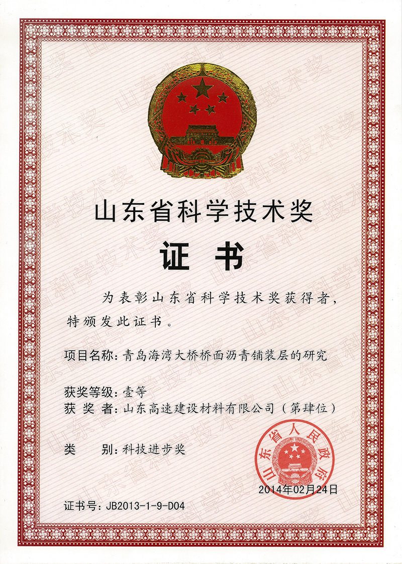 · 获得山东省科技进步奖、中国公路学会科学技术奖、山东公路学会科学创新奖、交通科学技术奖等政府、行业奖项共10项